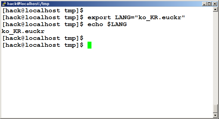 - 기본 세팅인 영문은 1바이트로 동작하기 때문에 2바이트인 한글로 언어팩을 변경해준다 ( 로그아웃시 초기화 )