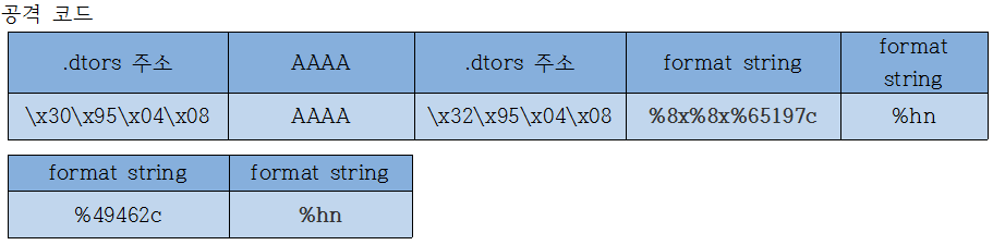 - format string %hn을 사용하여 esp+24의 위치를 보게되고 이 곳에는 .dtors의 시작 주소 2byte 뒤 주소가 적혀있다