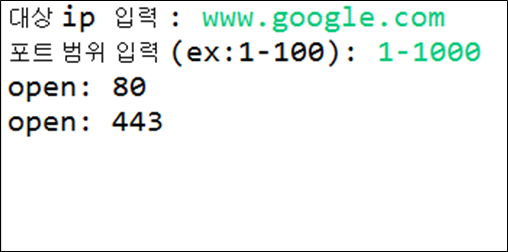 // 포트의 범위를 지정한 만큼 포트를 스캔해준다