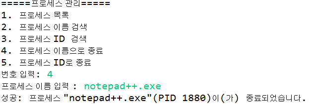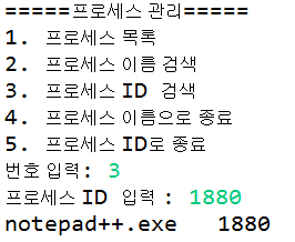 p.pid_kill(find); // 프로세스 ID를 통해 종료하는 함수