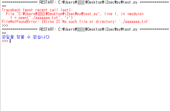 print("파일을 찾을 수 없습니다")